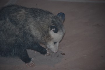 Close-up of possum holding a marshmallow.