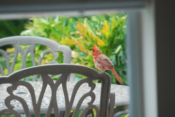 Close-up of a female cardinal.