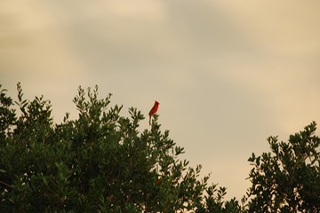 A cardinal perched in one of our oak trees.