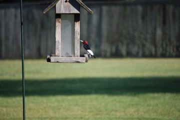 Another view of the red headed woodpecker on our bird feeder.