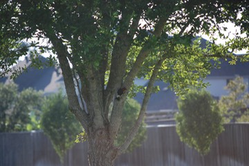 A red headed woodpecker on our neighbor's oak tree.