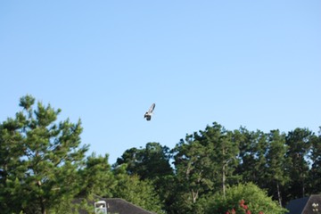 A hawk flying over our yard.