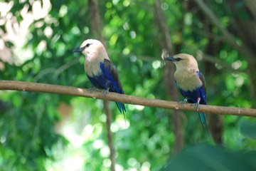 Two Blue Belly Rollers on a branch.