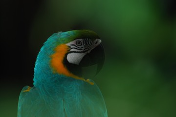 Red and Green Macaw sitting by a Military Macaw sleep.