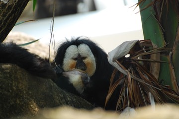 Red and Green Macaw sitting by a Military Macaw sleep.
