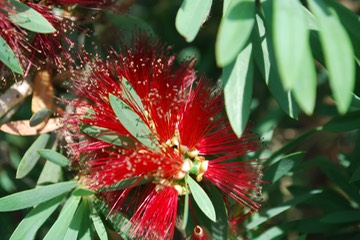 A close-up of a bottle brush flower.