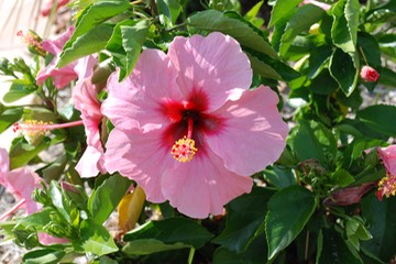 Close-up of a pink dwarf hibiscus.