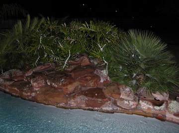 Christmas 2004 snowfall on pool waterfall.