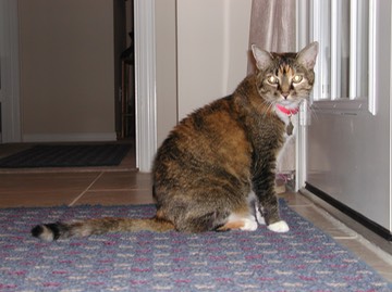 Whiskey guarding our back doors.