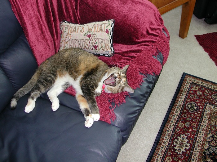 Whiskey wakes up with a yawn.